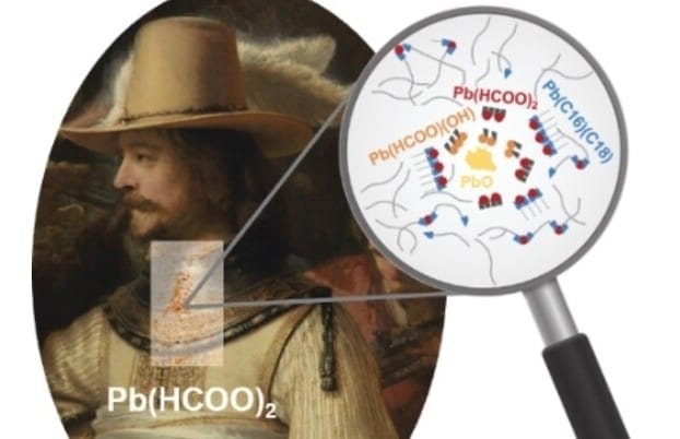 Un equipo multidisciplinar de químicos e historiadores del arte ha utilizado una técnica de nanoscopía de rayos X para analizar las capas invisibles de La Ronda de Noche. El estudio ha revelado algo que ha dejado boquiabierta a la comunidad científica: Rembrandt utilizó un compuesto químico extremadamente raro, el formiato de plomo, que no se había detectado nunca antes en pinturas de esa época.